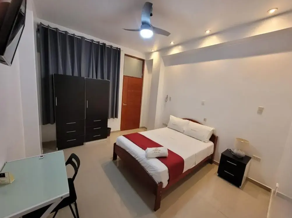 Weitere Informationen zu Hospedaje Petro TalaraHotel Gran Palma Talara bietet eine Vielzahl von Dienstleistungen und Ausstattungsoptionen für einen angenehmen Aufenthalt. Das Hotel verfügt über Familienzimmer sowie Zimmer mit Privatbad, die mit Flachbildfernseher und Klimaanlage ausgestattet sind. Gäste können sich während ihres Aufenthalts auf den Zimmerservice, das Restaurant und kostenpflichtigen Parkplatz freuen.